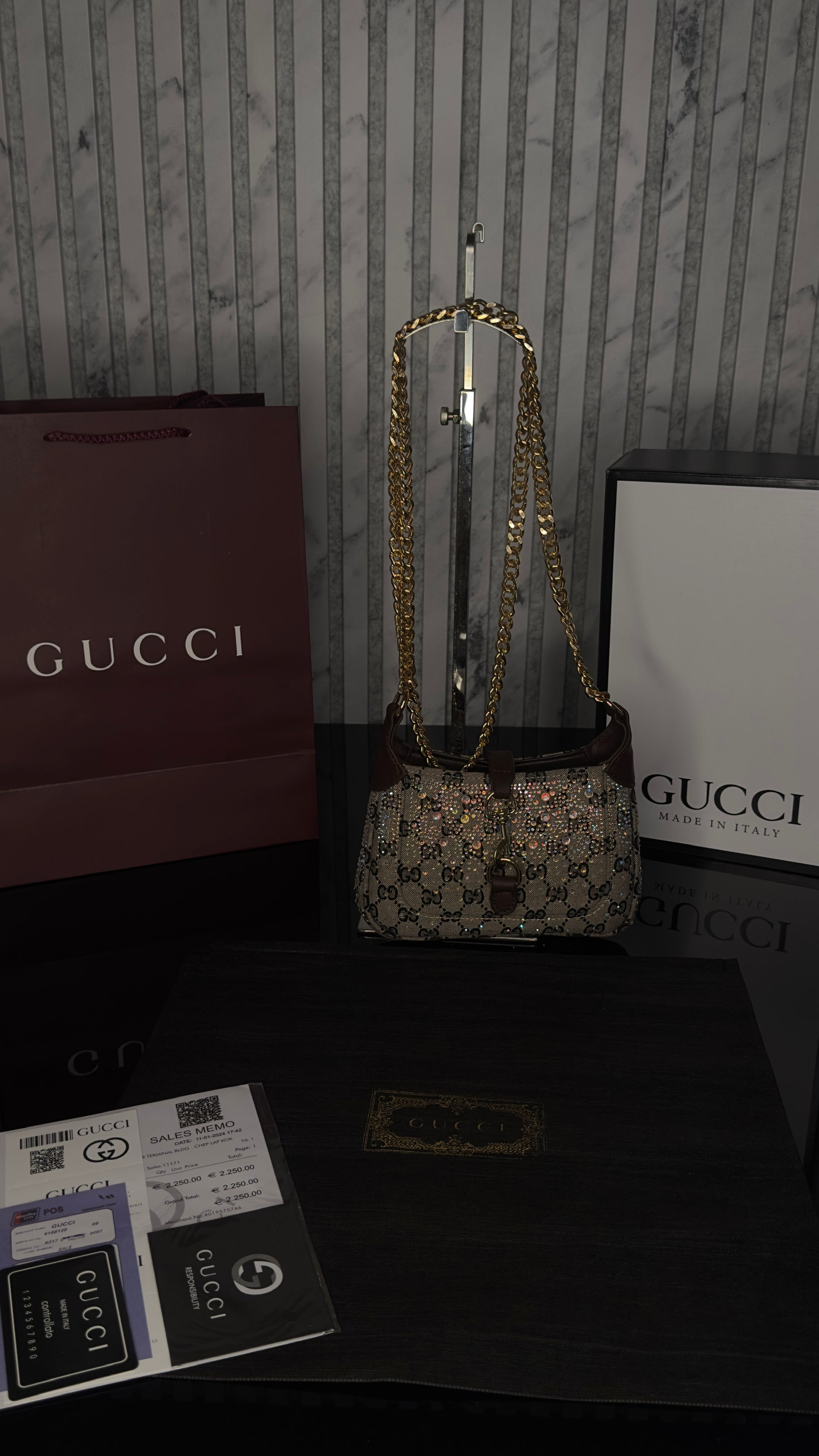 Gucci Jackie 1961 GG Crystal Mini Bag – Beige/Ebony with Brown Leather