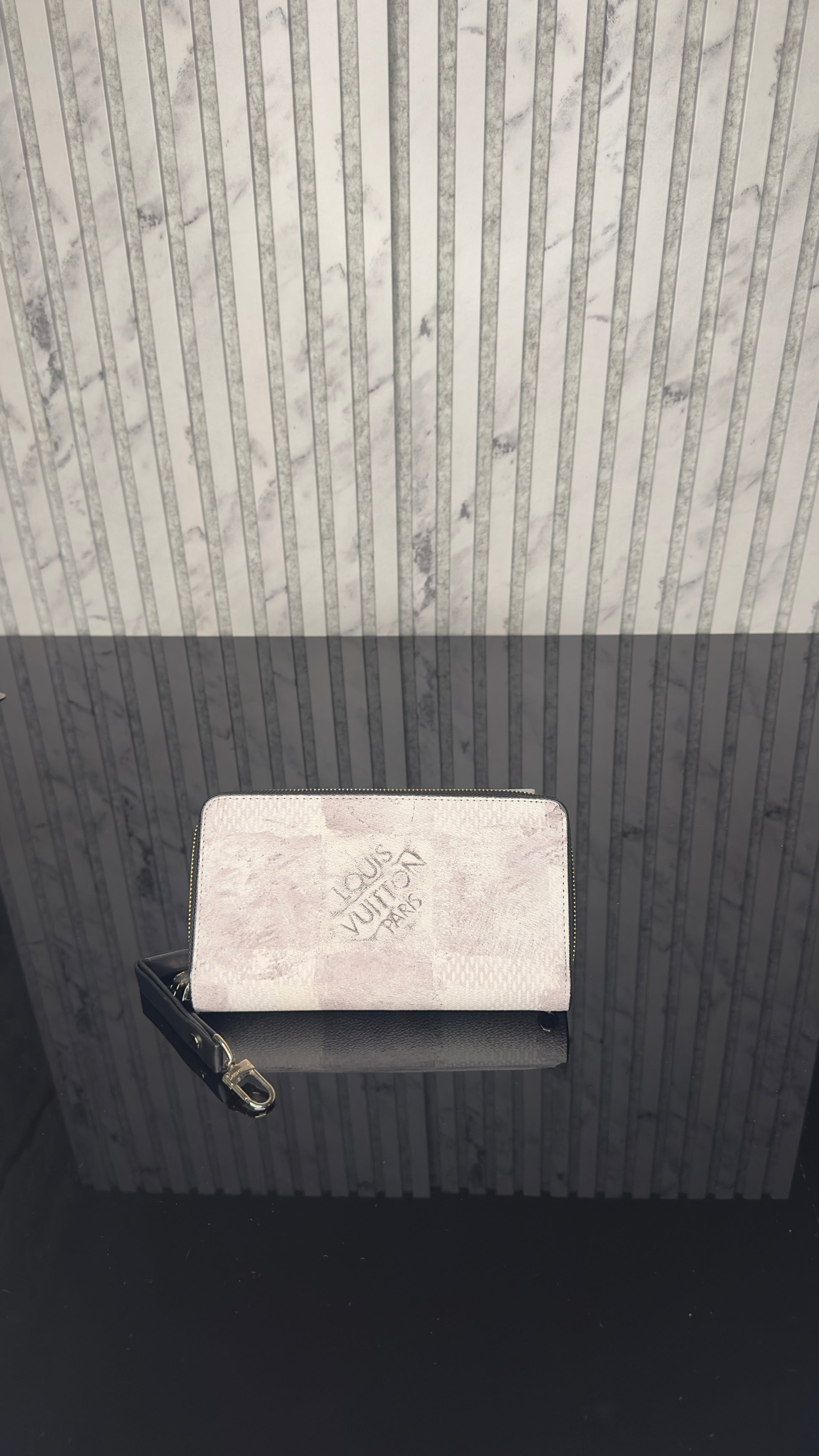 Κομψό ανδρικό πορτοφόλι Louis Vuitton σε λευκό – γκρι καρό σχέδιο Damier, κατασκευασμένο από premium Nappa τεχνοδέρμα.