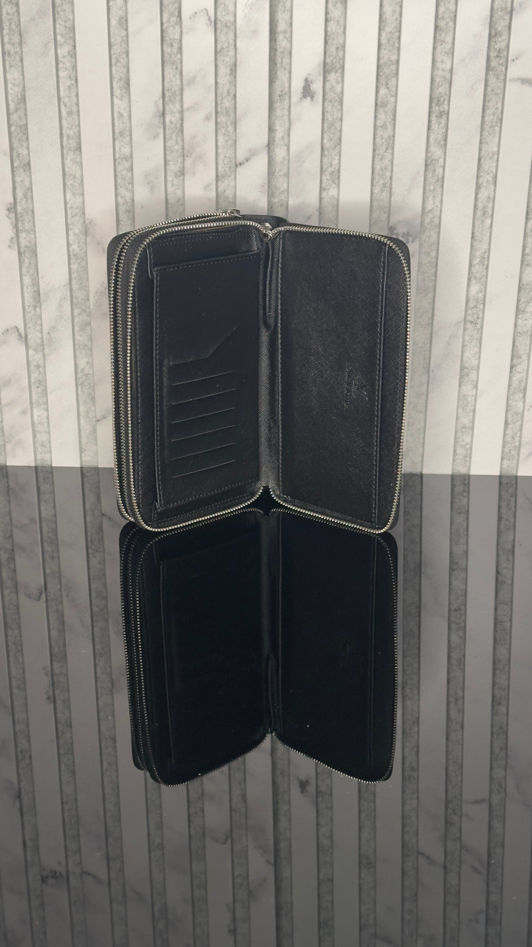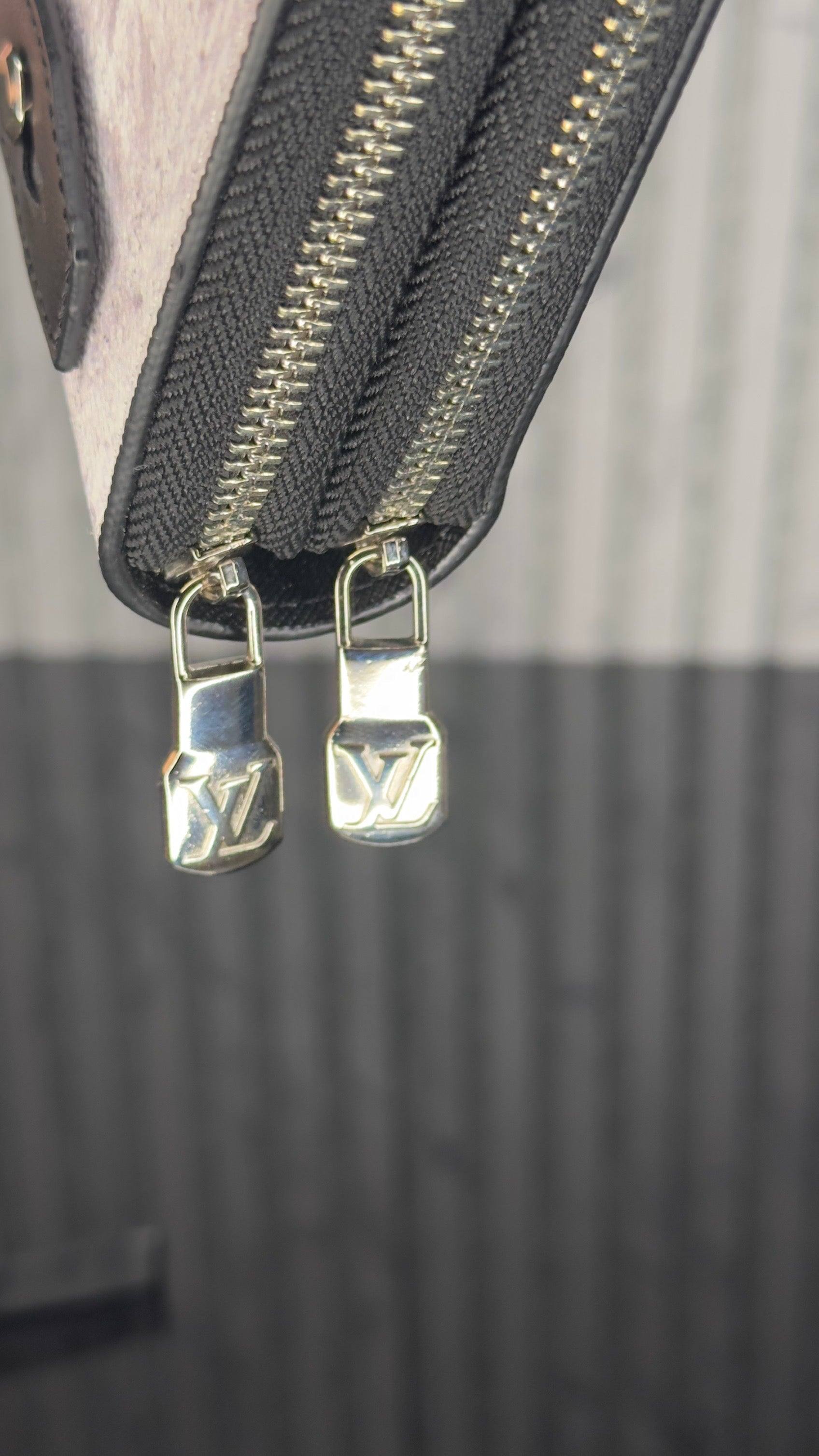Το περιμετρικό φερμουάρ εξασφαλίζει ασφάλεια και ευκολία, ενώ το ανάγλυφο λογότυπο Louis Vuitton ολοκληρώνει τη διαχρονική αισθητική του.
