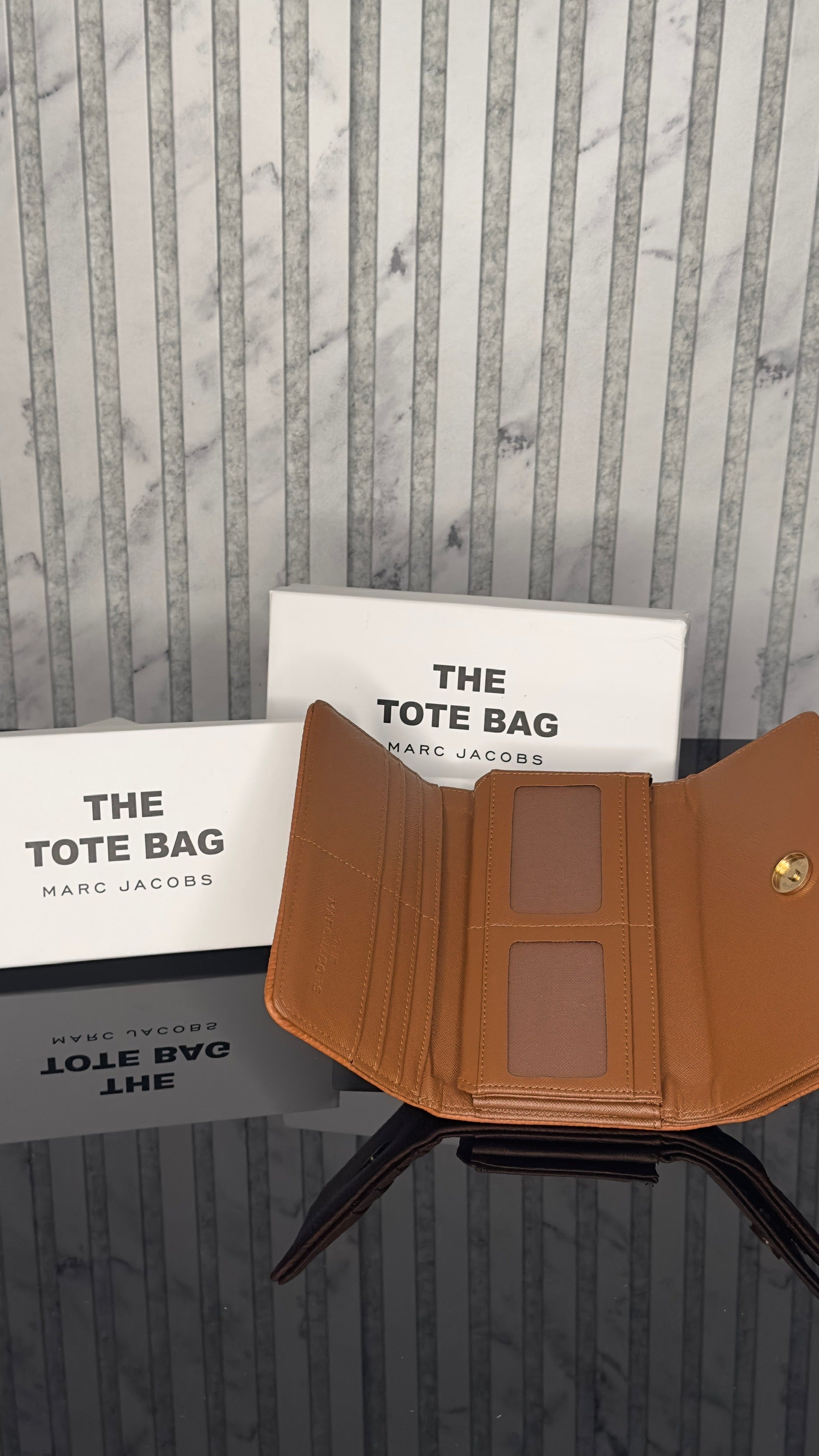 Το The Tote Bag Wallet σε ζεστή καφέ απόχρωση αποπνέει διαχρονικότητα και εκλεπτυσμένο στυλ. Η υφή του τεχνοδέρματος τύπου Saffiano και οι χρυσές λεπτομέρειες αναδεικνύουν την ποιότητα του οίκου Marc Jacobs.