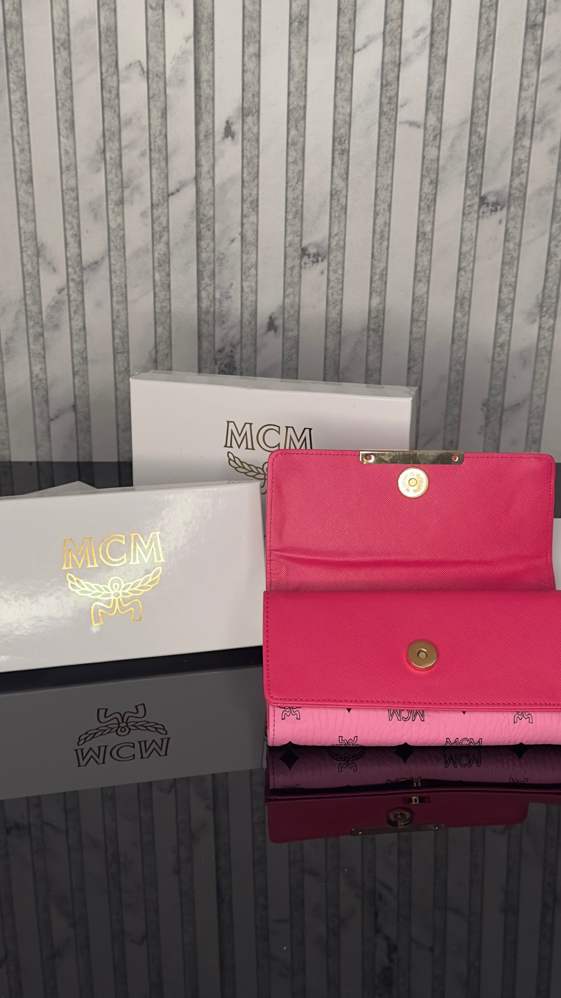 Το MCM Visetos Wallet σε ροζ απόχρωση αποπνέει δυναμικό και θηλυκό χαρακτήρα, συνδυάζοντας το πολυτελές ύφος του οίκου με μοντέρνα αισθητική.